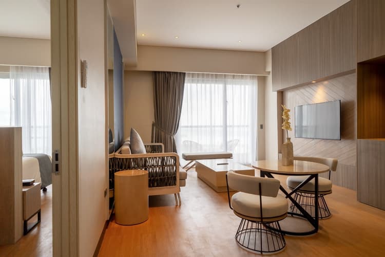 솔레아 스위트룸은 품격 있는 휴식을 위해 설계된 여유로운 공간으로, 세련된 인테리어와 현대적인 편의 시설이 조화를 이루는 프리미엄 객실입니다. 분리된 거실과 침실(트윈베드+퀸베드)이 마련되어 있어 더욱 프라이빗한 휴식을 누리실 수 있으며, 전용 발코니에서는 바다와 정원의 아름다운 풍경을 감상하실 수 있습니다. 우아하게 꾸며진 욕실에는 욕조와 샤워 시설이 갖추어져 있어 편안하고 격조 높은 스테이를 선사합니다.