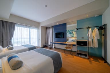 프리미어 씨뷰 객실은 모던하고 세련된 인테리어와 아늑한 분위기가 어우러진 휴식 공간입니다. 전용 발코니에서 세부 바다의 탁 트인 전경을 감상하실 수 있어 특별한 휴양의 순간을 선사하며, 깔끔하게 구성된 욕실에는 샤워 시설이 갖추어져 있어 편안하고 쾌적한 스테이를 제공합니다.